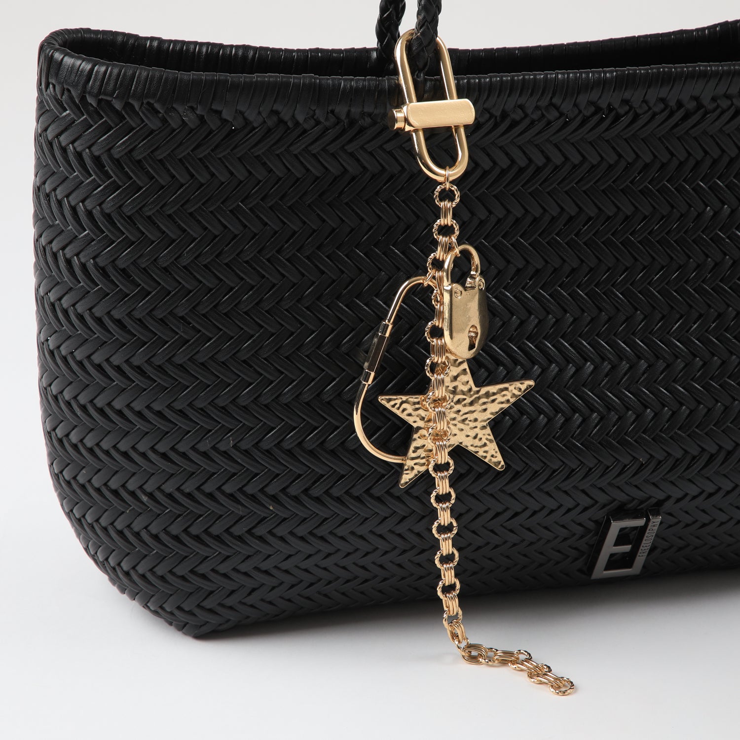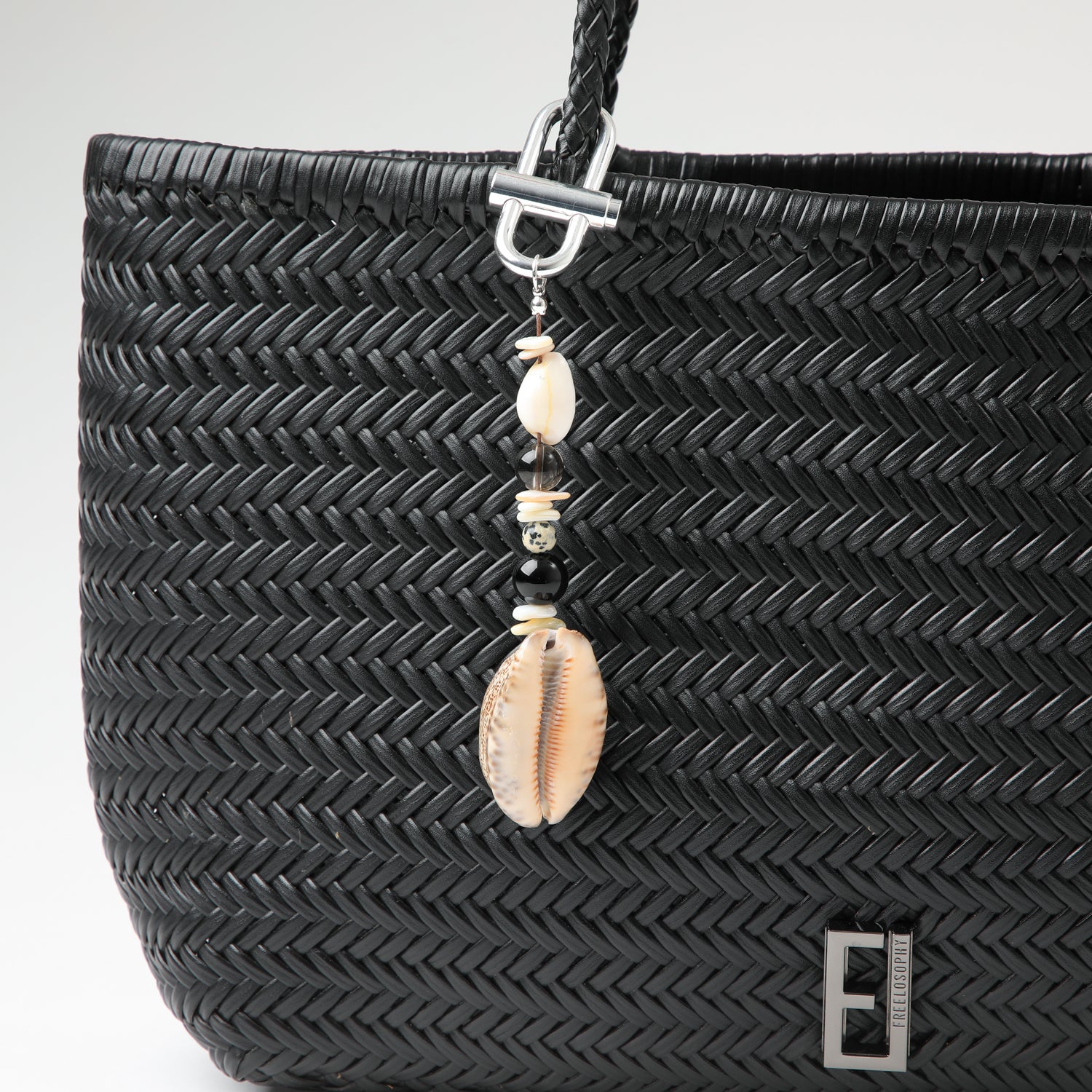 Venice Burgundy es una cartera tipo tote de cuero negro. Su correa permite llevarla en el hombro.